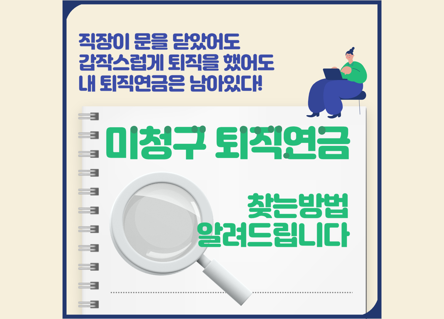 직장이 갑작스럽게 폐업을 하여 근로자가 지급신청을 못하였거나 다른 이유로 직장을 그만두고 직접 청구가 가능한지 몰라 청구하지 못한 사례가 5만여 건(총 1,085억)이나 된다고 합니다. 혹시 나도 여기에 해당되지는 않는지 확인해 보시고 미청구 퇴직연금이 있다면 꼭 찾아가시길 바랍니다.