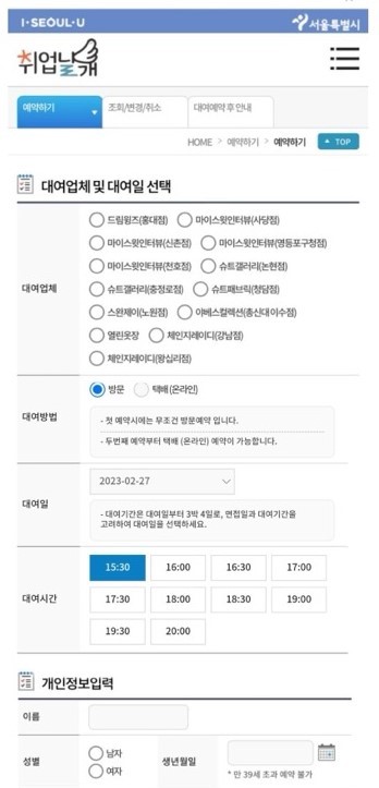 ■ 면접정장 무료대여 이용방법