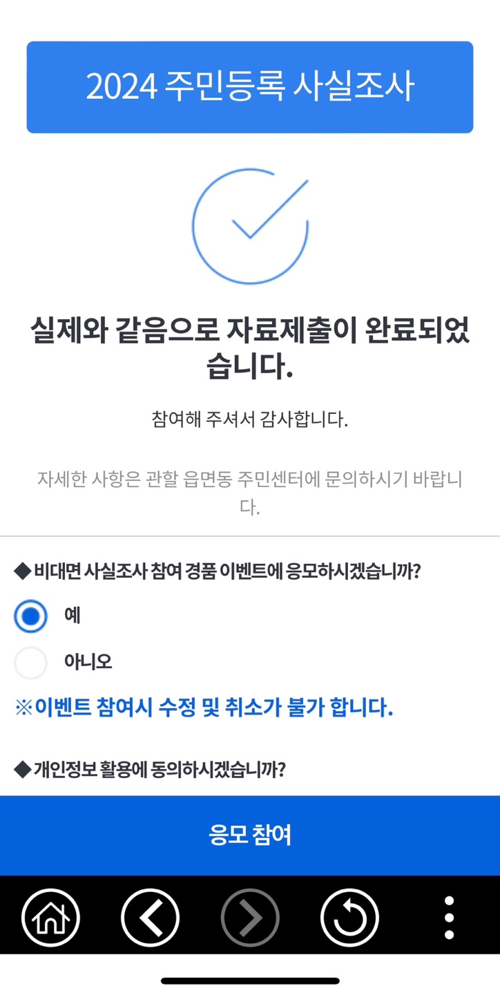 주민등록 사실조사에 참여하시고 응모참여만 하시면 됩니다.