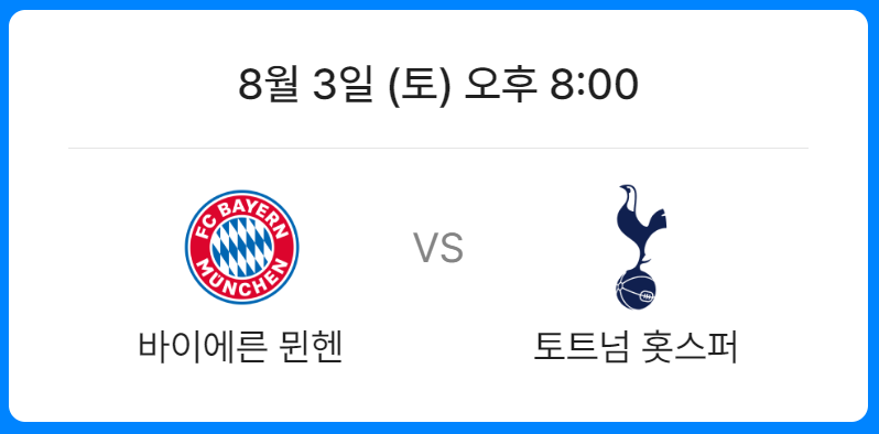 K리그VS 토트넘, 뮌헨VS 토트넘의 경기일정이 확정되었습니다.